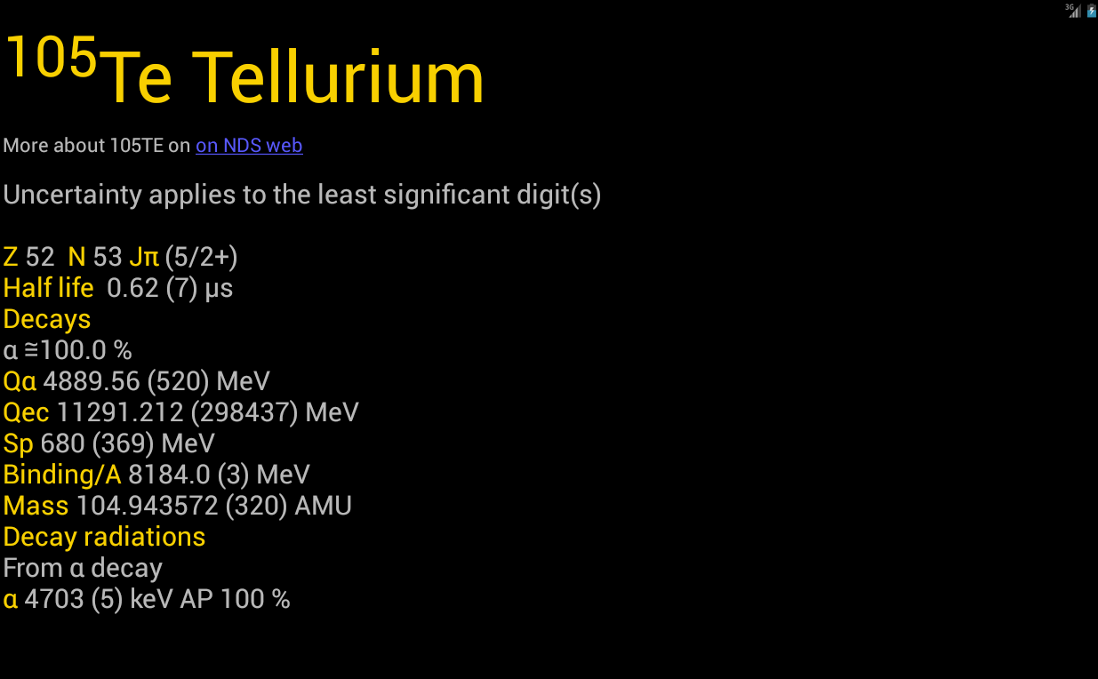 O Isotope Browser foi desenvolvido pela Nuclear Data Section da Agência Internacional de Energia Atômica para dispositivos móveis com sistema Android e traz informações sobre mais de 4.000 nuclídeos e isômeros, que são selecionados a partir da tabela periódica ou filtradas a partir de informações de meia-vida, modo de decaimento, tipo de radiação e energia.